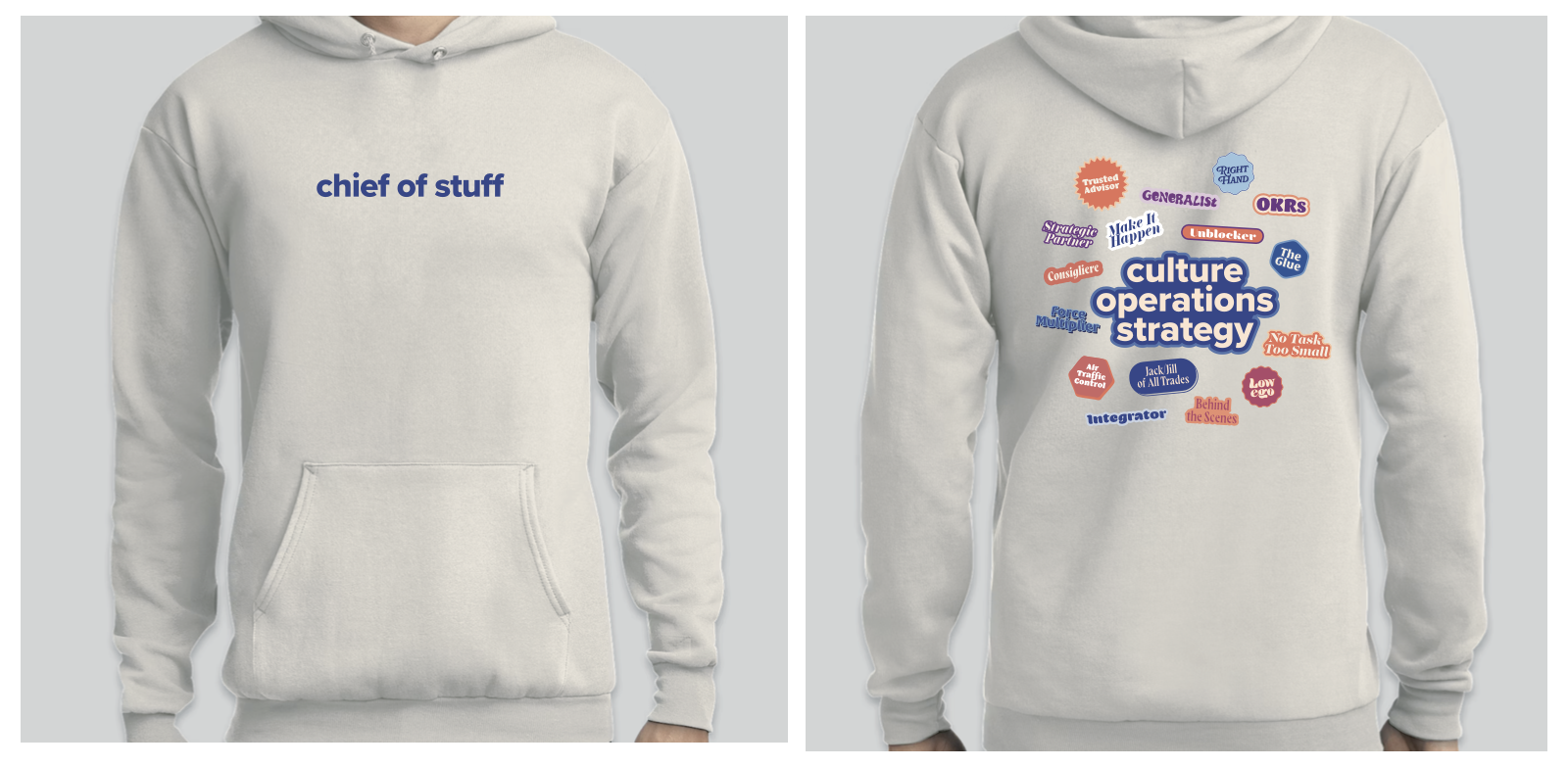 Ask a Chief of Staff helps companies find a Chief of Staff for every executive. I created the brand identity and a package of digital and print brand assets, including a pitch deck template, half-zip sweater, insulated mug, and tote bag.