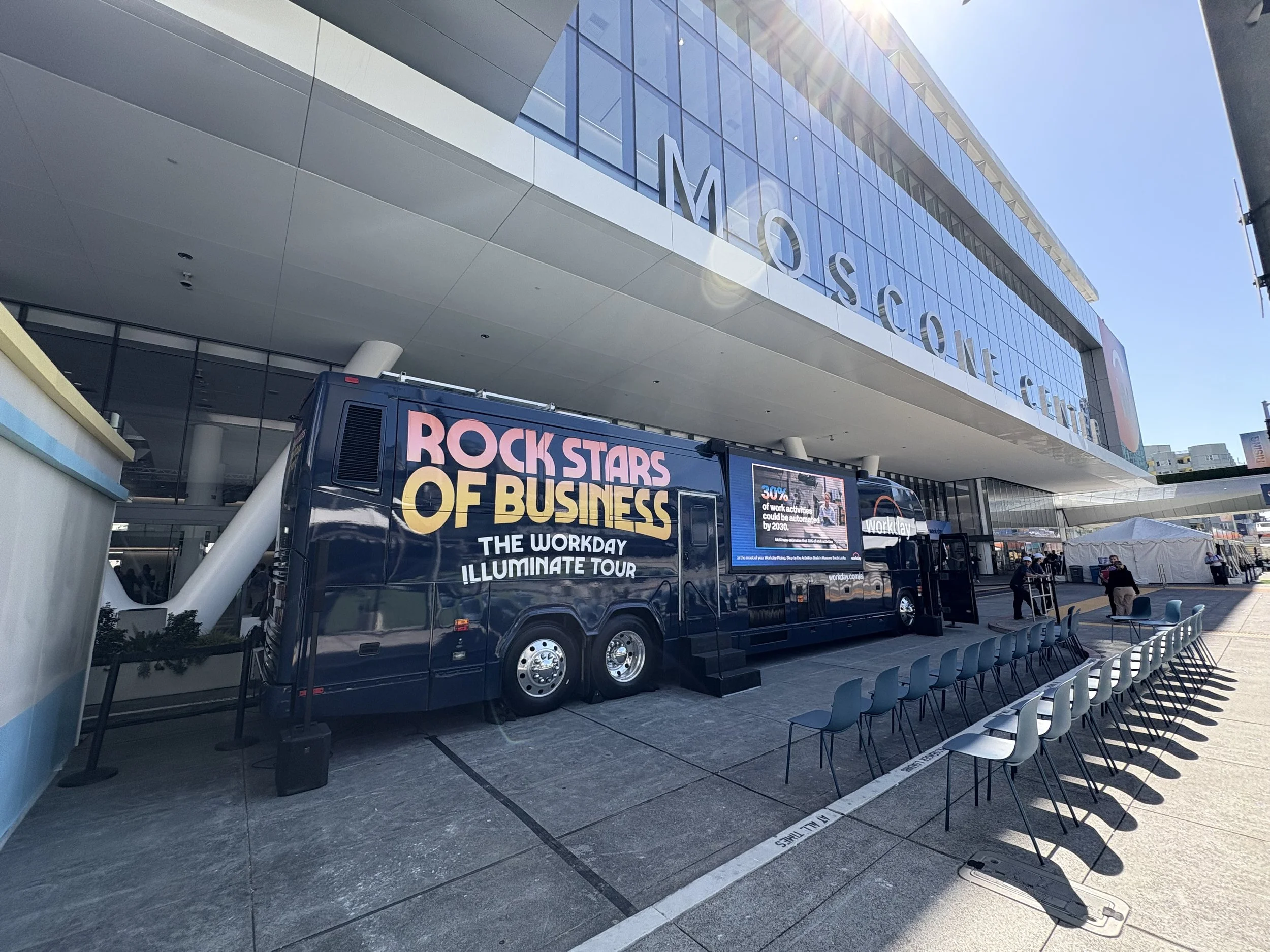 During my time on the advertising team, I was the primary designer for this advertising campaign, featuring a 40ft tour bus wrapped in our custom advertising with Billy Idol as our headliner. The entire campaign ran over the course of 6 months, featured in 20+ cities across the US, engaged with 650+ VP and C-suite executives, generated $590mil+ in pipeline, and inspired a return tour the following year featuring our AI-powered messaging. I created a variety of assets, including bus and airstream wraps, event signage, merchandise, digital experiences, giveaways, vinyl record awards, and more.